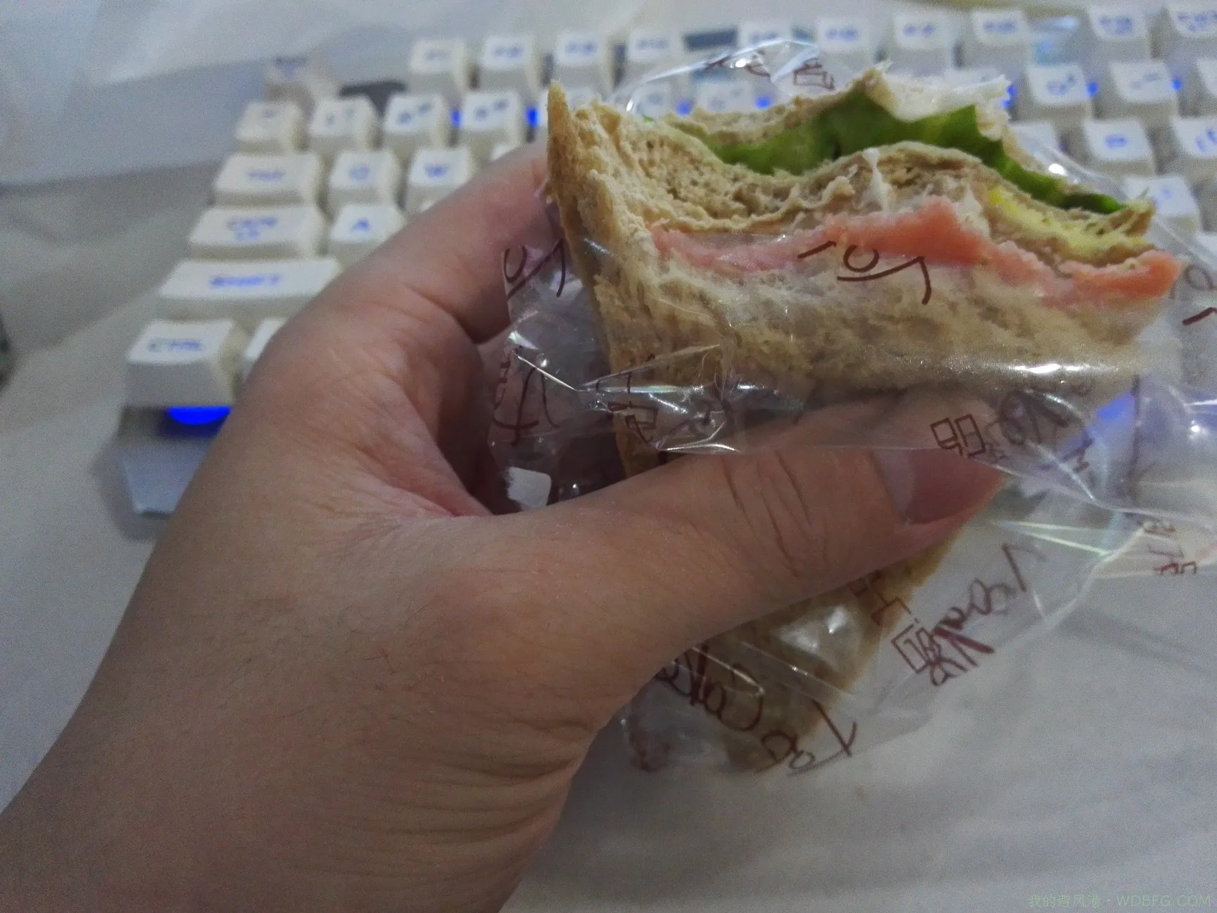 啃三明治,饱了